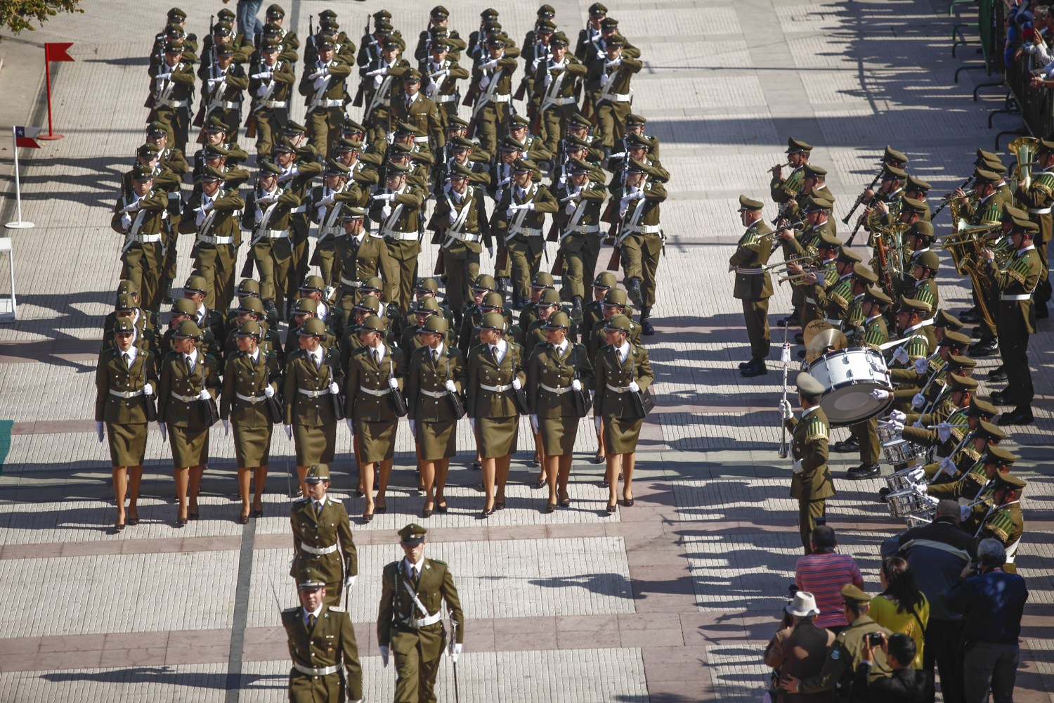 Al son del Orfeón Nacional de Carabineros, los uniformados realizaron la tradicional revista de la institución.