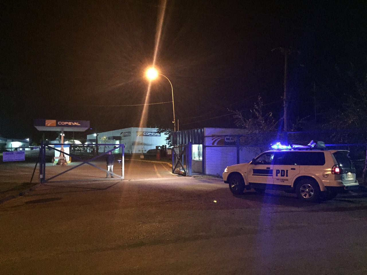 Según informó la PDI, cerca de la 01:30 de la mañana de este miércoles, el guardia de seguridad -tras sentir los ladridos de los perros del lugar- tomó la decisión de revisar las instalaciones de la empresa, cuando se encontró con dos sujetos que intentaban ingresar por el muro perimetral, al que golpeaban con un combo. Debido a esta situación, la víctima intentó impedir el ingreso de los antisociales y así frustrar el delito.