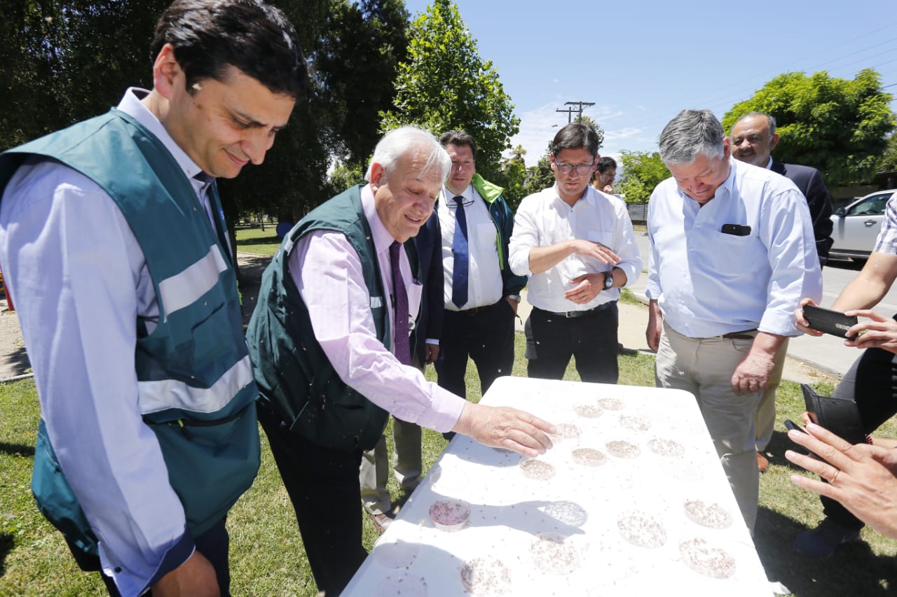 El director nacional del Servicio Agrícola y Ganadero (SAG), Horacio Bórquez, junto al seremi de Agricultura de la región de O´Higgins, Joaquín Arriagada, y representantes del sector privado, encabezaron la primera liberación experimental de polillas estériles de Lobesia botrana para el control urbano de esta plaga, iniciativa pionera a nivel mundial. La actividad se llevó a cabo en una casa particular en Requínoa, en la región de O´Higgins.
