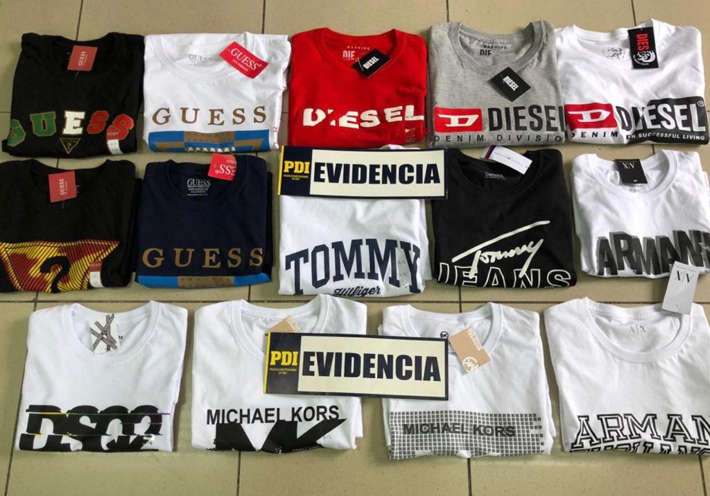 En la propiedad, se encontraron poleras falsificadas con logos de marcas como Guess, Michael Kors, Diesel y Tommy Hilfiger, las cuales fueron incautadas para ser remitidas posteriormente a la Fiscalía.