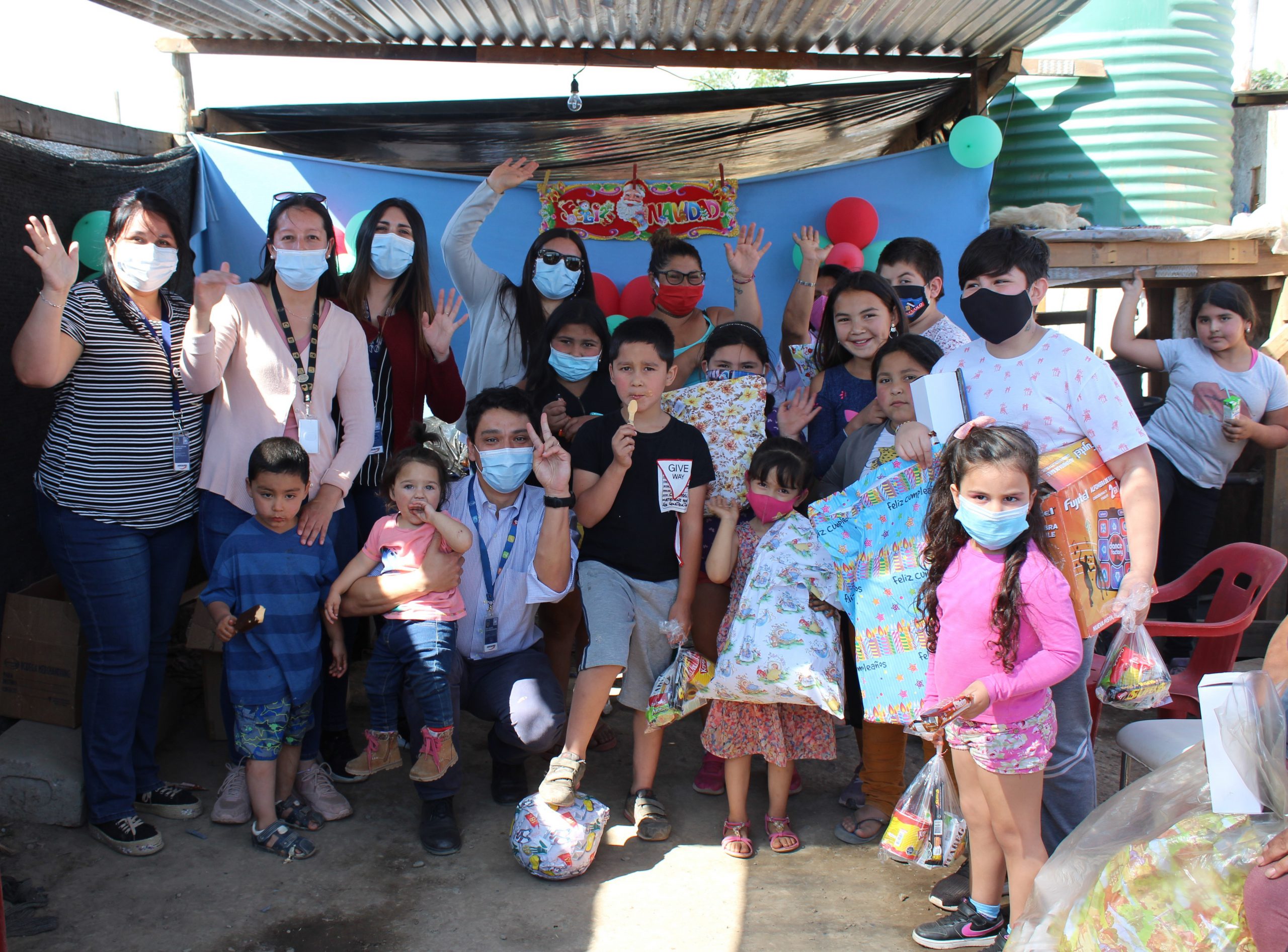 Alrededor de 70 trabajadores de las áreas de Administración, Operaciones y Despacho de la sucursal Rancagua de Agrosuper participaron de esta iniciativa, entregando regalos a los niños del campamento Dintrans.