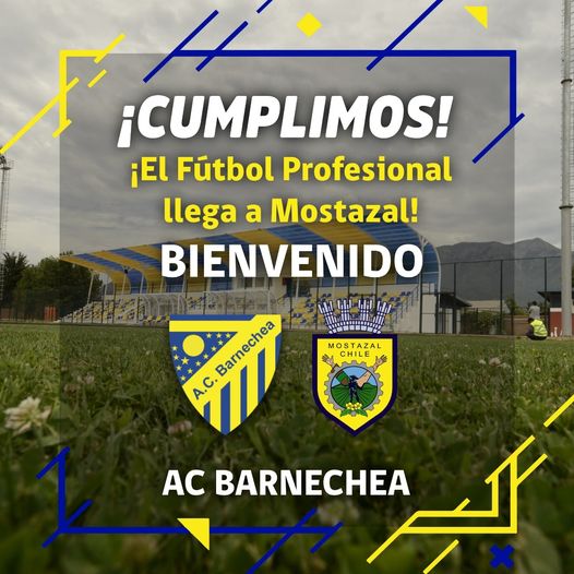 «El Club Barnechea tendrá nuevo hogar, luego que la escuadra recibiera la autorización pertinente para trasladar su localía de Mostazal dejando así atrás el recinto de Lo Barnechea», anuncia una publicación del Facebook de la Municipalidad de Mostazal, acompañada de la siguiente imagen:
