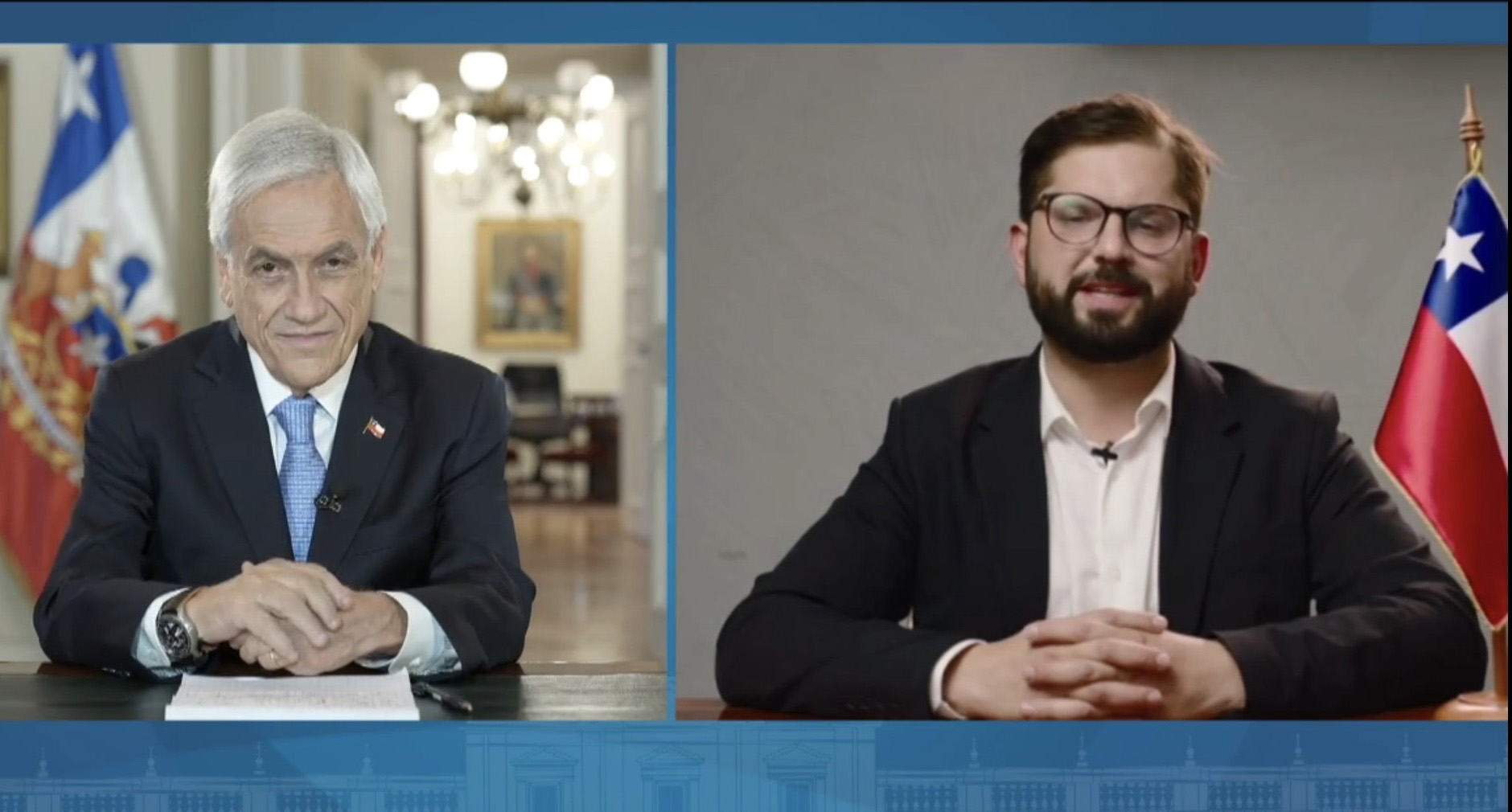 Boric le respondió: «Muchas gracias Presidente, es un honor para mí poder hablar con usted, y por este medio poder dirigirme a los chilenos y chilenas que nos están escuchando: que sepa usted y nuestra gente que voy a dar lo mejor de mí para estar a la altura de este tremendo desafío, y que nuestro país saque lo mejor de sí cuando nos unimos».