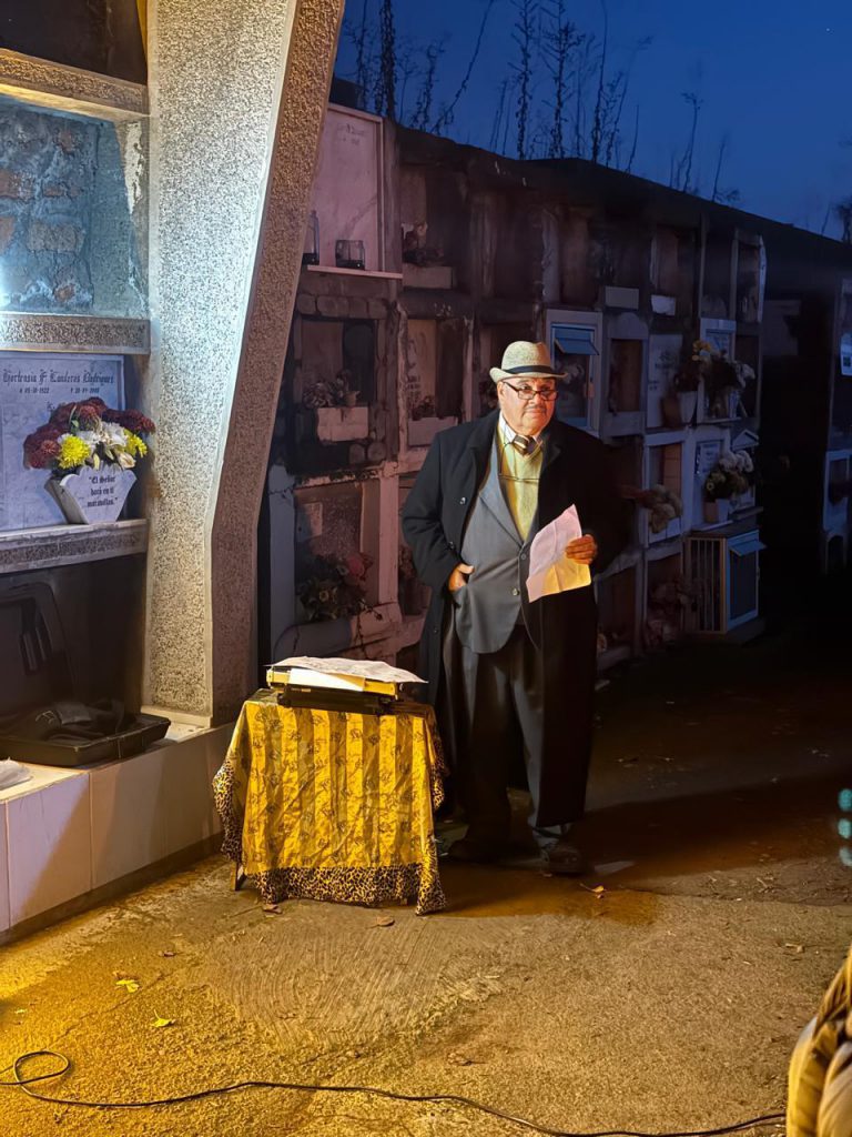 El recorrido por el camposanto chimbaronguino fue acompañado de interesantes datos relatados por el profesor Miguel Lira.