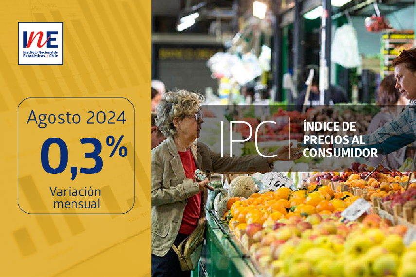 En agosto de 2024, el Índice de Precios al Consumidor fiue de 0,3%, acumulando 3,4% en el año y 4,7% a doce meses de corrido.