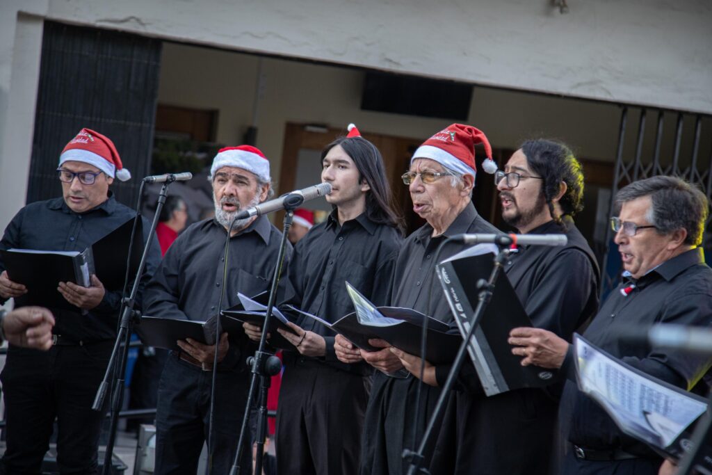 La jornada comenzó con la presentación de villancicos a cargo de talleres culturales locales, que llenaron el ambiente de melodías tradicionales y ritmos contagiosos. La música en vivo se apoderó de cada rincón de la Plaza de Armas, deleitando a niños, jóvenes y adultos. Las luces, guirnaldas y adornos festivos aportaron un matiz especial a este icónico espacio de encuentro de la capital de Colchagua.