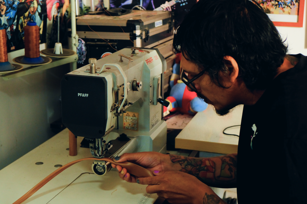«Primero fue este chico quien me enseñó cómo se trabajaba el cuero. Luego, conocí a su abuelo y me enamoré del material, de sus posibilidades y de las historias que guarda el oficio», recuerda Jorge, quien hoy se desempeña como marroquinero en la misma comuna, fabricando bolsos y artículos de cuero bajo la “Quisca Leathercraft”, negocio que inició en plena pandemia.