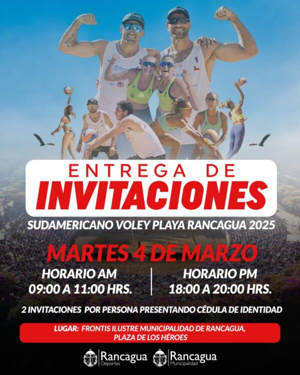 Este martes 4 de marzo, la Municipalidad de Rancagua inició la entrega de invitaciones gratuitas para el Sudamericano de Vóley Playa 2025, evento que se desarrollará del 7 al 9 de marzo en la Medialuna Monumental.