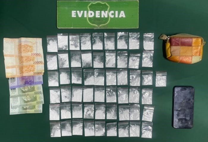 El procedimiento se originó luego de que la mujer, identificada con las iniciales F. E. A. M, despertara sospechas debido a su comportamiento en la vía pública. Ante esta situación, los funcionarios policiales efectuaron un control investigativo, momento en el cual la mujer accedió a colaborar entregando el monedero, el cual también contenía dinero en efectivo.
