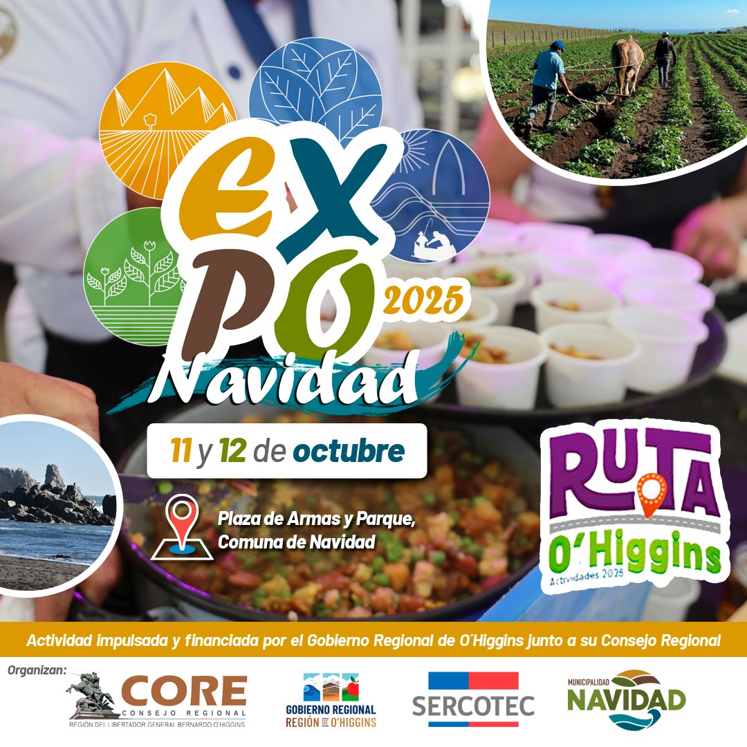 Hoy y mañana 12 de octubre, la comuna de Navidad será sede de la Expo Navidad 2025, una actividad organizada en conjunto por el Consejo Regional, Core; el Gobierno Regional de O’Higgins, Sercotec y la Municipalidad de Navidad.