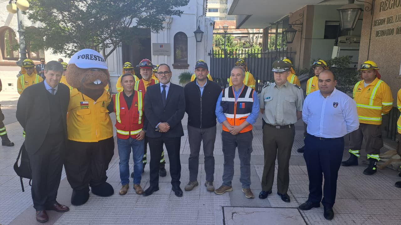 Finalmente, el presidente del Consejo Regional de Bomberos, Juan Luis Fabia, destacó las capacidades de la institución, particularmente la incorporación de una nueva flota de camiones especializados en emergencias forestales.