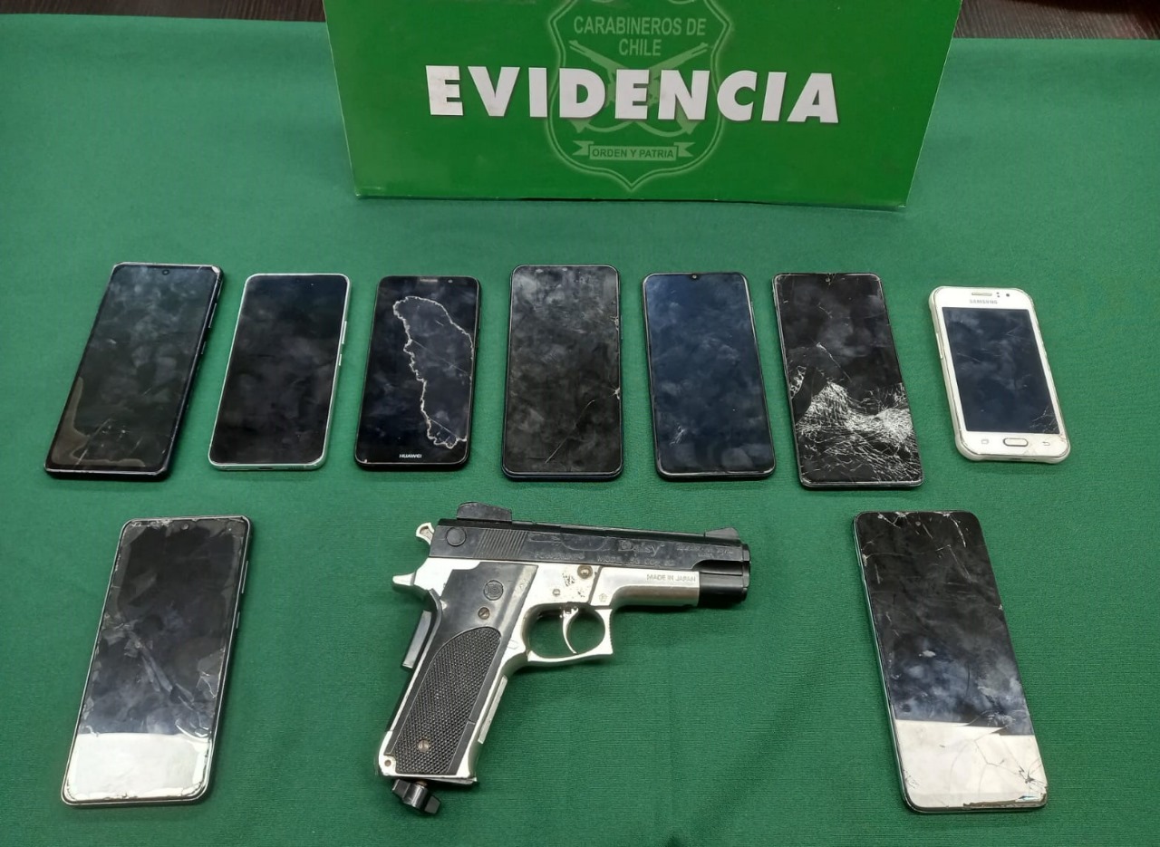 Los detenidos fueron identificados por sus iniciales P.A.U.M. (22), M.A.P.C. (31) y A.J.P.C. (28), todos de nacionalidad chilena y con antecedentes por delitos como amenazas, microtráfico, receptación de vehículos, robo con violencia y tenencia ilegal de armas de fuego.