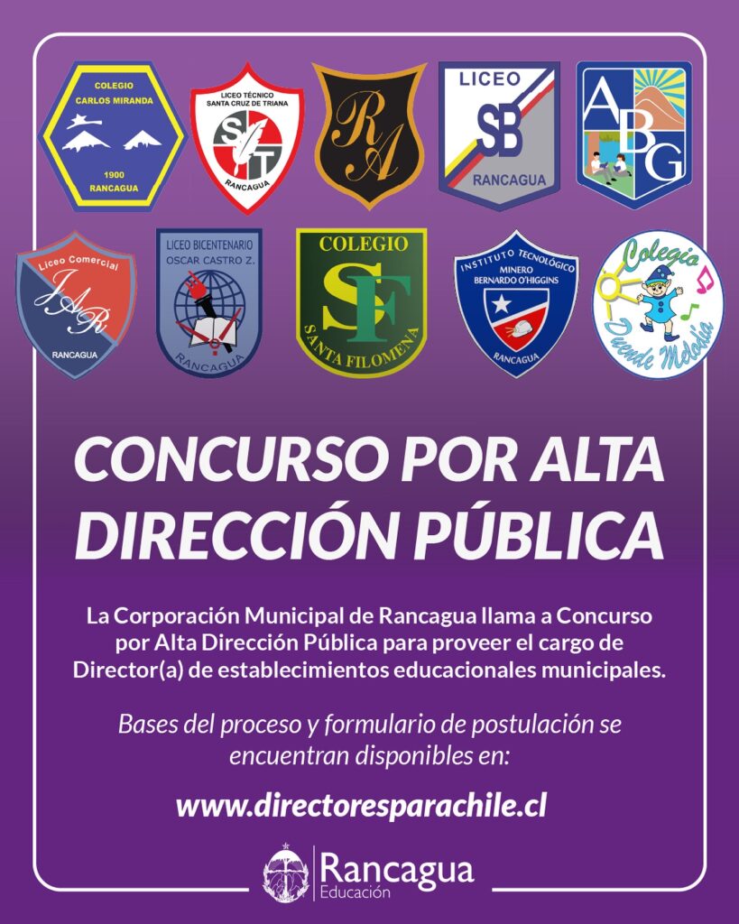 La Corporación Municipal de Rancagua (Cormun) inició un proceso de selección por Alta Dirección Pública para proveer el cargo de director(a) en diez establecimientos educacionales de la comuna.
