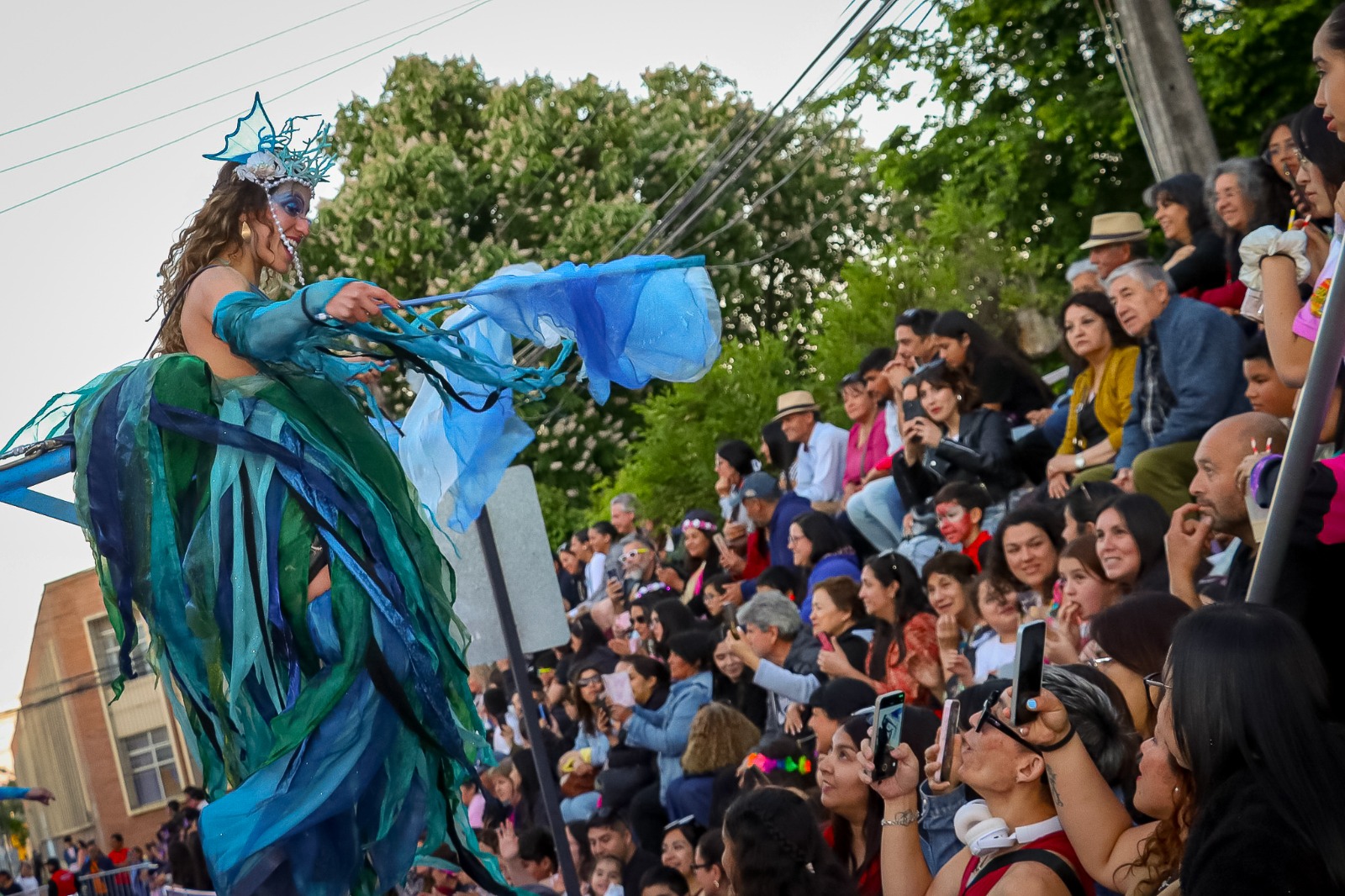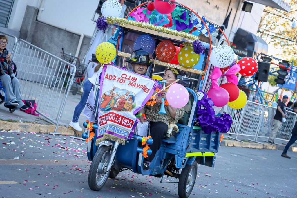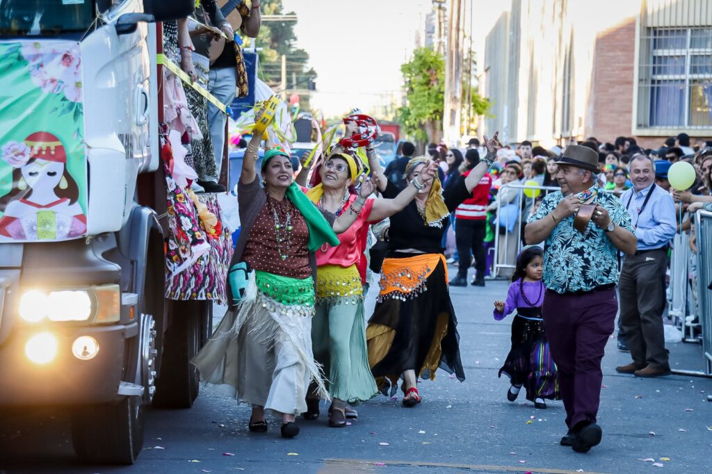 Entonces, comenzó el desfile. Por la calle Carampangue desfilaron los colores y las emociones: una comparsa que rindió homenaje a nuestra Centenaria Mansión del Estudio; un grupo de adultos mayores que, con elegancia, revivieron la moda del Chile del siglo XIX; y una carroza que evocó a La Pérgola de las Flores, trayendo consigo la música, las risas y los aromas de una época entrañable.