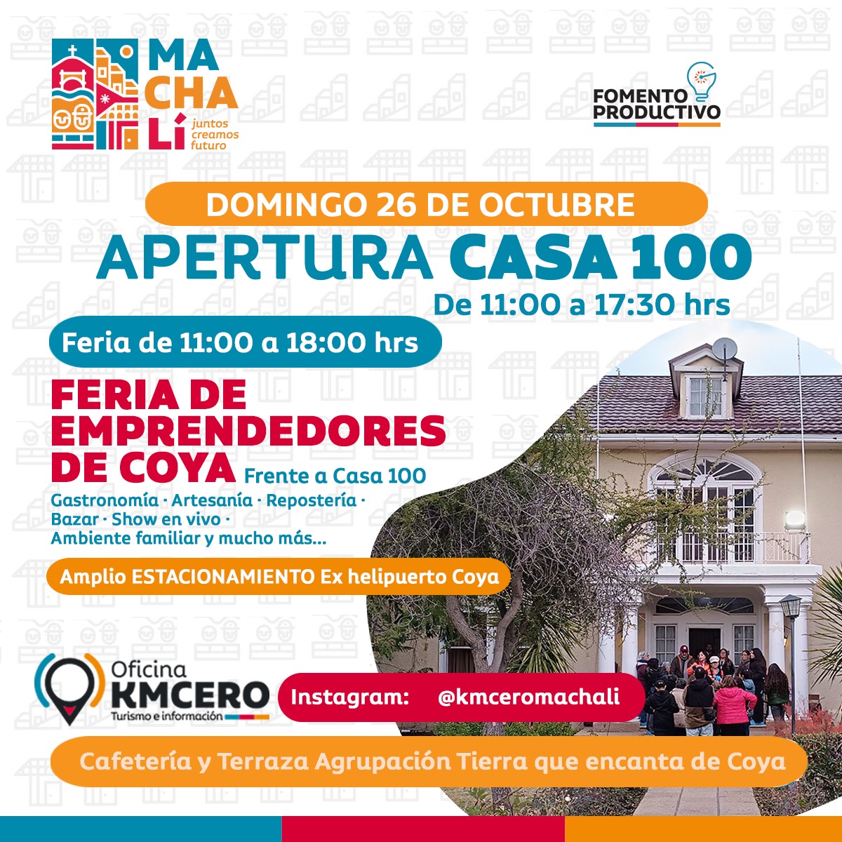 En paralelo, frente a la Casa 100 se instalará una Feria de Emprendedores, donde diversos expositores ofrecerán gastronomía, artesanías, bazar, música en vivo y otras actividades familiares. La feria estará disponible entre las 11:00 y las 18:00 horas, convirtiendo a Coya en un punto de encuentro cultural y turístico para este fin de semana.