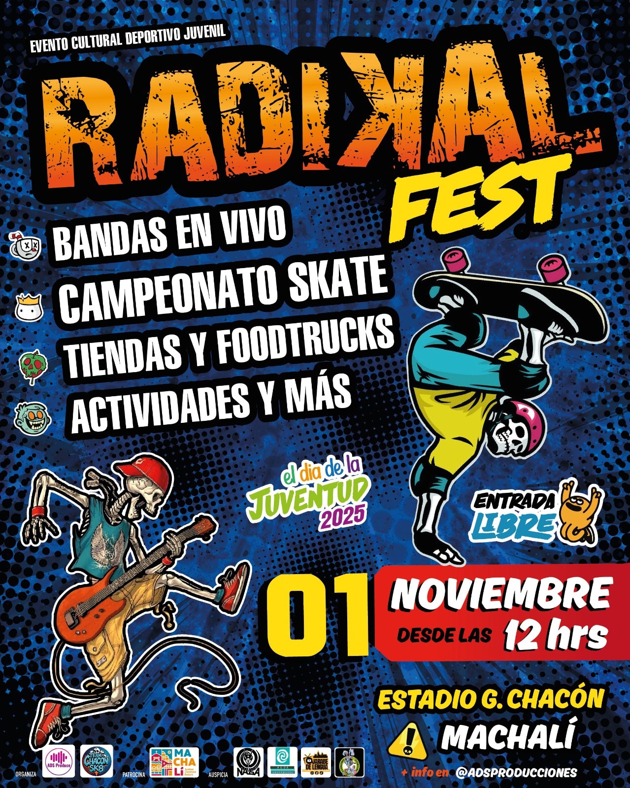La comuna de Machalí se prepara para vivir una nueva jornada llena de música, deporte y cultura urbana con la realización del “Radikal Fest”, evento que se desarrollará el próximo sábado 1 de noviembre en el Estadio Guillermo Chacón.