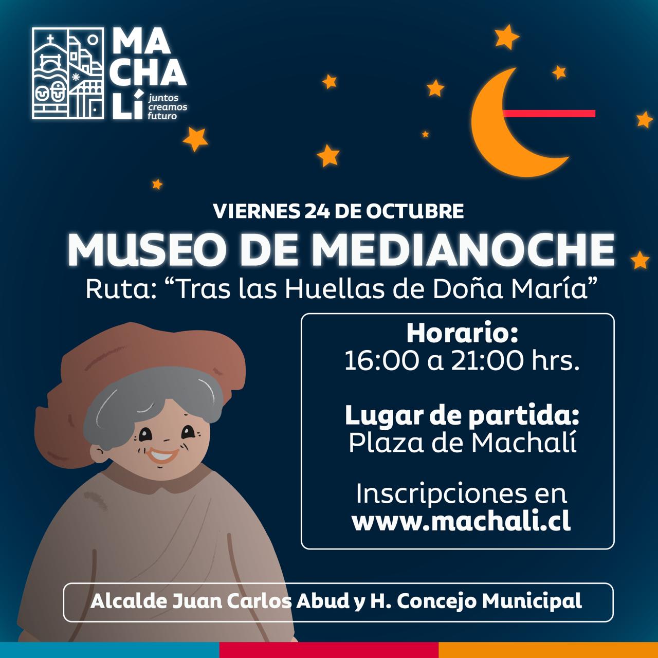 Este viernes 24 de octubre se realizará la nueva edición del Museo de Medianoche en Machalí, actividad que este año presentará la ruta “Tras las huellas de Doña María”.