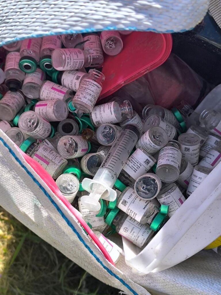 Entre los elementos a libre exposición se detectaron pilas, jeringas con agujas y material quirúrgico como guantes, tijeras y cubetas, clasificados como residuos peligrosos y especiales, principalmente cortopunzantes, que representaban un riesgo inminente para la salud de la comunidad.