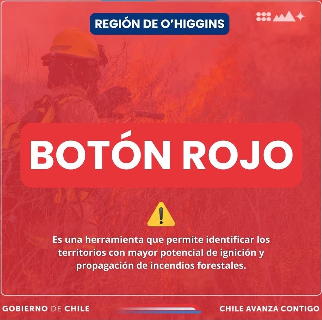 Durante esta jornada, la región de O’Higgins vivirá el primer día en condición de Botón Rojo de la temporada, medida que regirá entre las 14:00 y las 18:59 horas de este lunes.
