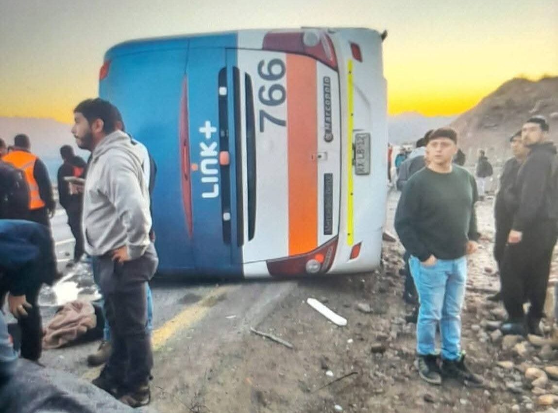 Codelco informó oficialmente que a las 19:35 horas de este sabado un bus de la empresa Link, que trasladaba a 48 trabajadores, volcó en el kilómetro 41 de la Carretera El Cobre, en el área industrial de la División El Teniente.