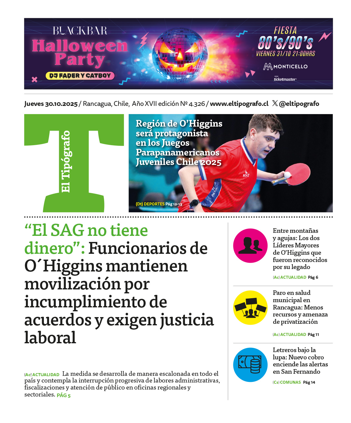 Revisa la edición de El Tipógrafo de este jueves 30 de octubre
