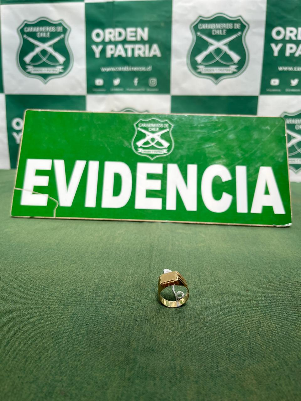 Carabineros informó que el anillo sustraído fue recuperado y posteriormente devuelto a las víctimas.