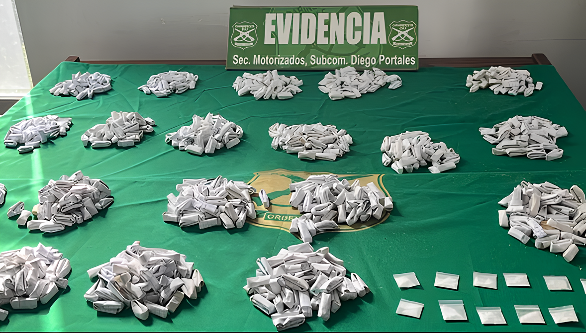 En este marco, personal policial fiscalizó un vehículo en la población Diego Portales, comprobando que el conductor, un hombre de 31 años, portaba sustancias ilícitas listas para su comercialización directa, permitiendo la incautación de 1.068 envoltorios de pasta base de cocaína, 34 de clorhidrato de cocaína, tres de ketamina y marihuana a granel.