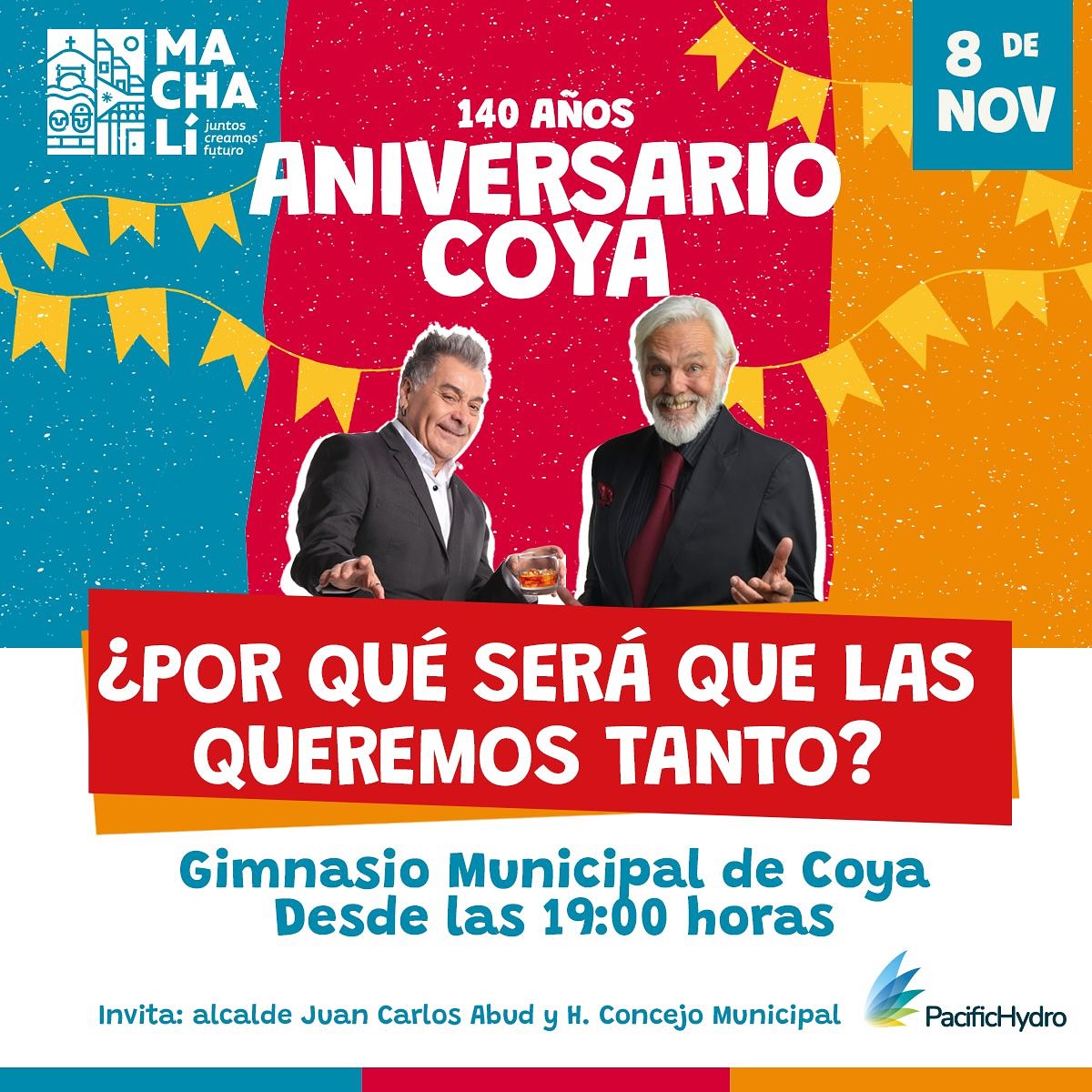 Este sábado 8 de noviembre, la localidad de Coya conmemorará su aniversario número 140 con una jornada cultural y recreativa organizada por el municipio.