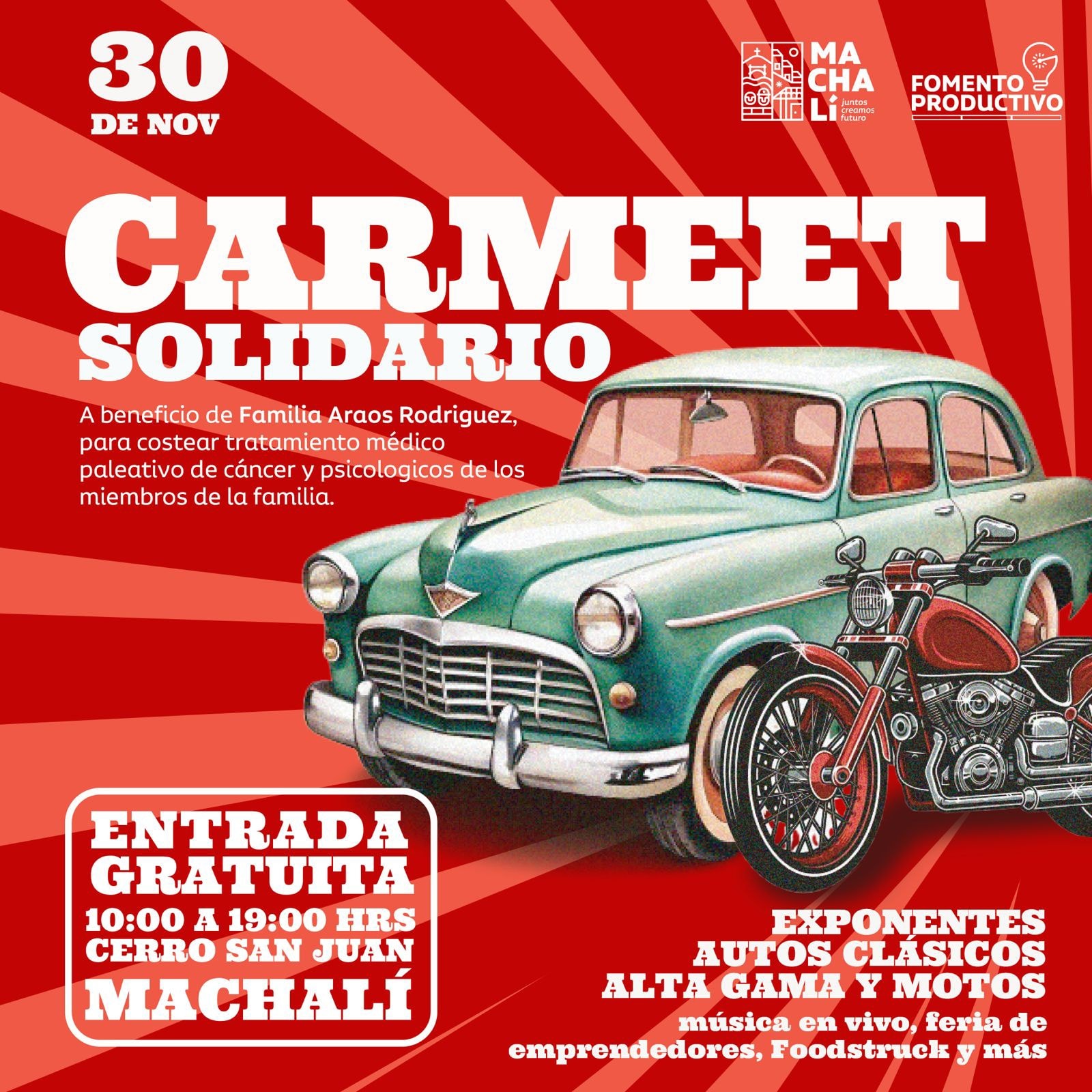 La comuna de Machalí se prepara para recibir una nueva edición del Carmeet Solidario, iniciativa que se realizará este domingo 30 de noviembre y que tiene como objetivo ir en apoyo de la familia Araos Rodríguez. La actividad busca reunir fondos para contribuir al financiamiento de tratamientos médicos paliativos relacionados al cáncer, además de apoyo psicológico para sus integrantes.