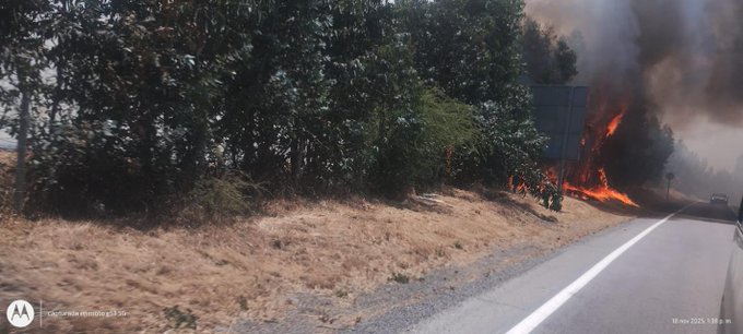 Un incendio forestal afecta al sector Lomas de Karelia, en La Guañanga, comuna de Las Cabras. Debido a la magnitud del fuego, la emergencia activó una segunda alarma, lo que movilizó a varias compañías de Bomberos que trabajan intensamente en el control del siniestro.