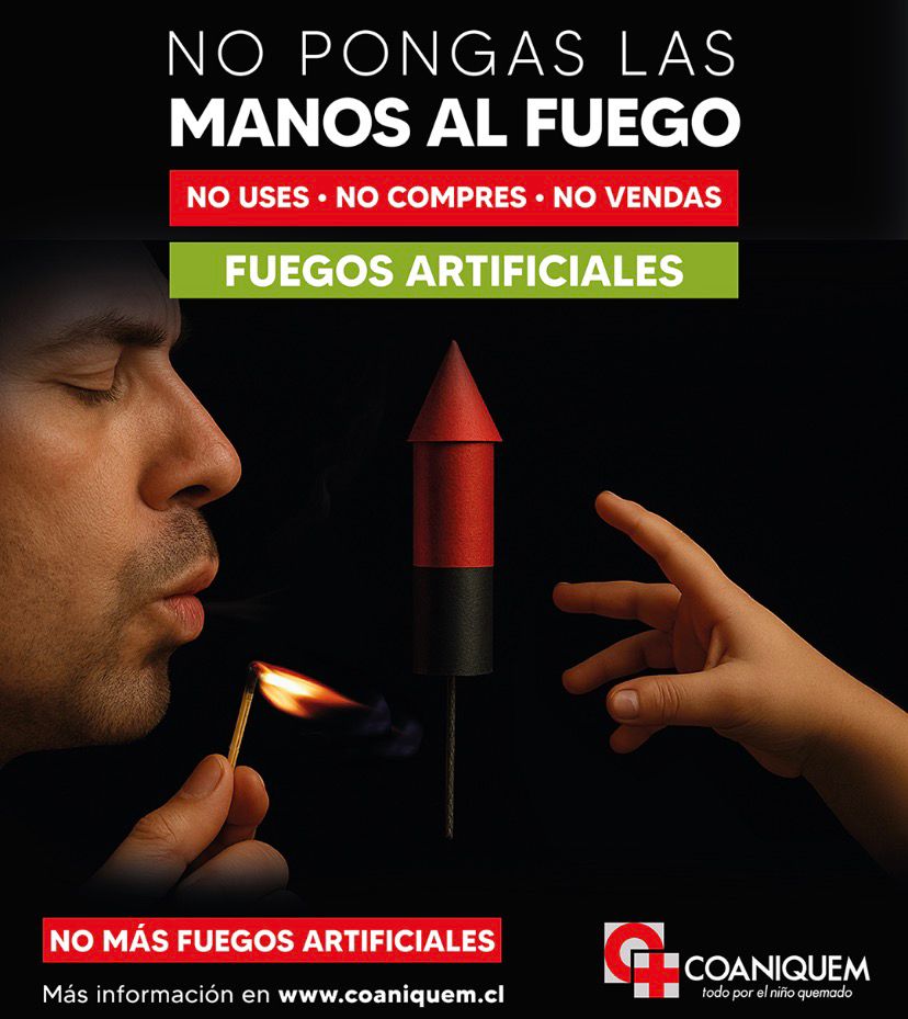 En ese sentido, desde Coaniquem reiteraron el llamado a la comunidad a “no usar, no comprar y no vender fuegos artificiales ni durante las celebraciones de fin de año ni nunca, recordando que la pirotecnia de uso doméstico está prohibida por ley y que su manipulación puede generar quemaduras graves y secuelas permanentes”, señalaron desde la institución.