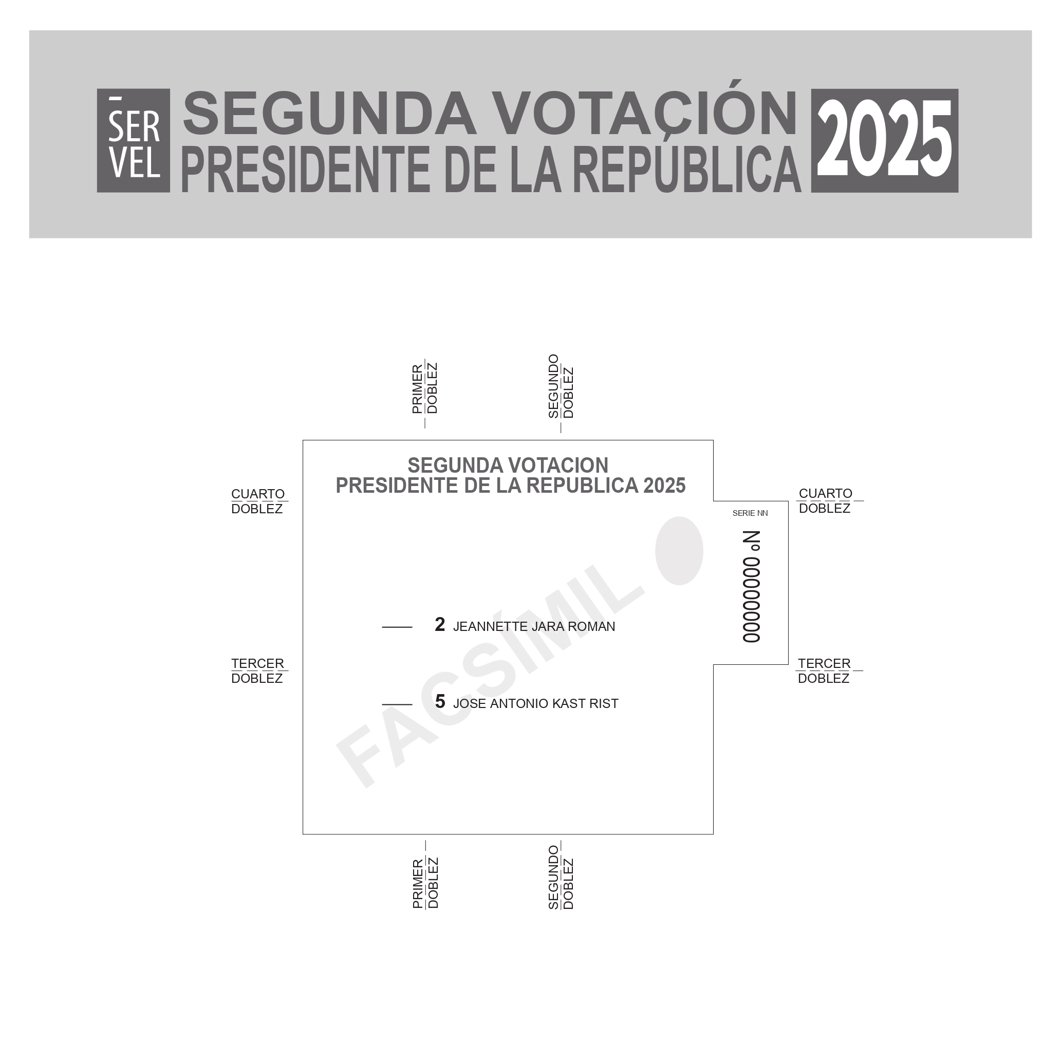 Este domingo 14 de diciembre se llevará a cabo la segunda vuelta de las Elecciones Presidenciales 2025, jornada en la que los chilenos y chilenas deberán escoger al próximo mandatario del país. Previamente, el Servicio Electoral (Servel) dio a conocer el facsímil oficial del voto que se utilizará mañana en todas las mesas receptoras de sufragios.