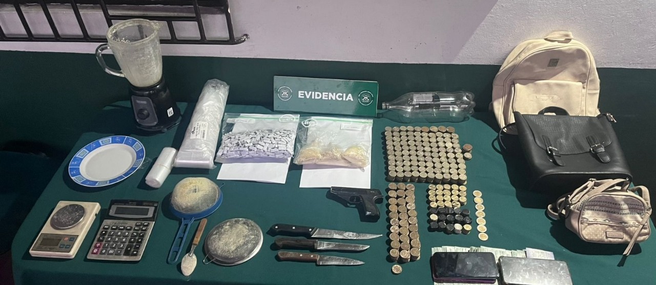 El procedimiento se originó cuando los efectivos policiales llegaron al domicilio para verificar que L.J.R.B. cumpliera la medida cautelar. Al abrir la puerta, observaron en una mesa de centro droga, una pistola, armas blancas, billetes de baja denominación y elementos para la elaboración de cocaína. Ante la flagrancia, Carabineros ingresó y detuvo a los ocupantes.