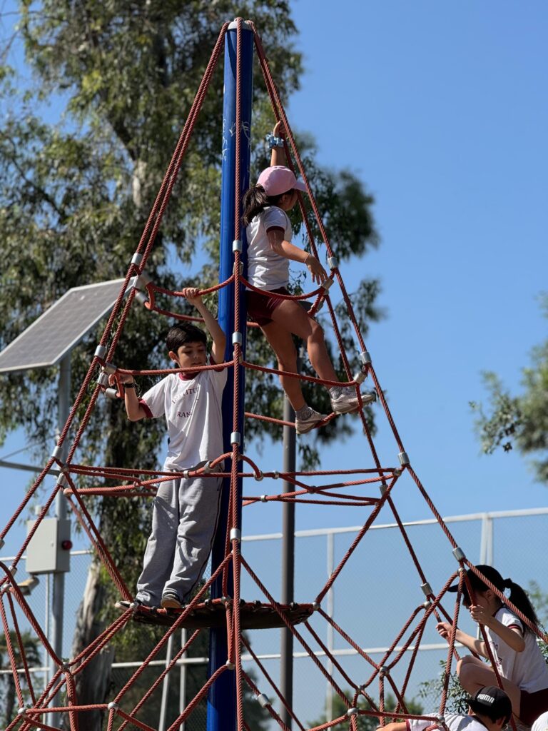 “Los alumnos de 3° y 4° básico participaron, junto a sus profesores, en una clase al aire libre realizada en un parque, donde desarrollaron ejercicios físicos y actividades lúdicas. Esta experiencia permitió reforzar hábitos de alimentación saludable y favoreció un aprendizaje más significativo, al combinar el enfoque lúdico con el desarrollo de la clase fuera del aula.”