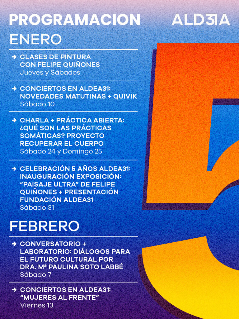 “Esta programación de los cinco años es una muestra de lo que hemos construido en Aldea31: un espacio donde las artes y la cultura se viven como un derecho y no como un privilegio. Durante estos años hemos reunido distintas disciplinas, miradas contemporáneas y propuestas de alto nivel en un territorio donde el acceso a este tipo de experiencias es escaso. Celebrar es también visibilizar un trabajo sostenido de descentralización cultural, de encuentro comunitario y de activación del territorio a través del arte”.