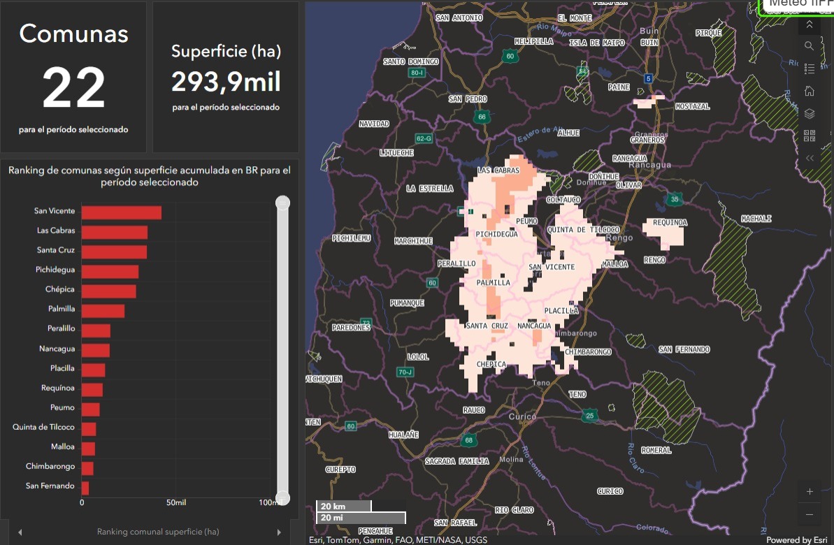 Esta herramienta determina las comunas con una mayor probabilidad de que se pueda iniciar un incendio forestal. «Hacemos un llamado a extremar medidas de seguridad para evitar incendios forestales como proteger el entorno, uso responsable del fuego y evitar conductas de riesgo. Si ves humo o fuego llama al 130″, señaló la entidad a través de su cuenta de X.