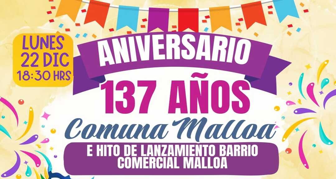 Malloa se prepara para vivir una tarde distinta, de esas que invitan a encontrarse y celebrar. Este lunes 22 de diciembre, la comuna conmemorará su Aniversario N°137, una fecha que no solo mira al pasado, sino que también proyecta el futuro con el lanzamiento del Barrio Comercial Malloa, iniciativa pensada para revitalizar la vida local y apoyar a sus emprendedores.