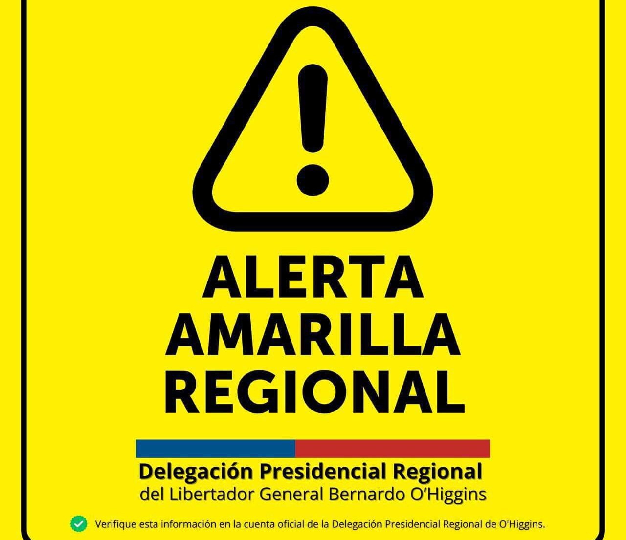 La Dirección Regional de SENAPRED declaró Alerta Amarilla para toda la Región de O’Higgins debido a la alta ocurrencia de incendios forestales, la superación de la capacidad operativa y las condiciones de viento y altas temperaturas. La medida rige desde este 16 de diciembre de 2025.