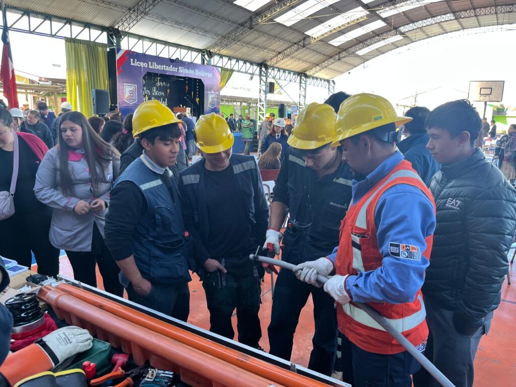 Y durante noviembre el Instituto Tecnológico Minero realizó el encuentro “Evolución Tecnológica Educativa”, jornada que impulsó el aprendizaje y el trabajo colaborativo junto a estudiantes y representantes del mundo técnico. La Compañía participó con un stand interactivo relacionado con los elementos de seguridad y protección personal, acercando la labor en terreno con redes eléctricas a quienes se están formando en esta especialidad.