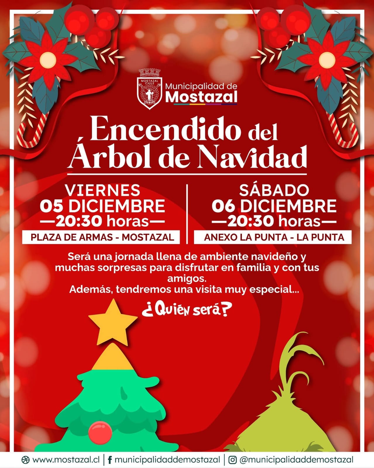 La Municipalidad de Mostazal realizará encendido de árbol de navidad en dos sectores de la comuna. En concreto, el primero de estos será el próximo viernes 5 de diciembre, en la Plaza de Armas de San Francisco, mientras que el segundo será en el Anexo La Punta.