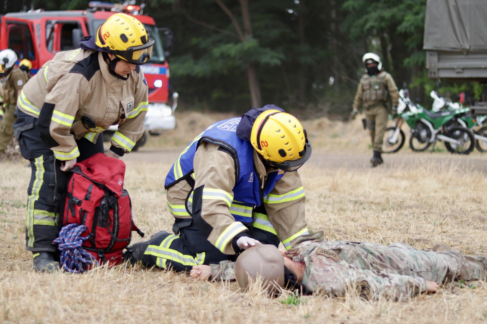 Resaltó asimismo, que este entrenamiento se enmarca en una alianza de trabajo colaborativo de más de tres años entre el Ejército de Chile, el Servicio de Salud O’Higgins y el SAMU O’Higgins, que incluye pasantías de enfermeros militares en el servicio prehospitalario. Esta iniciativa ha permitido alinear procedimientos, fortalecer la confianza entre equipos y contar con personal militar entrenado y familiarizado con la red civil de emergencias.