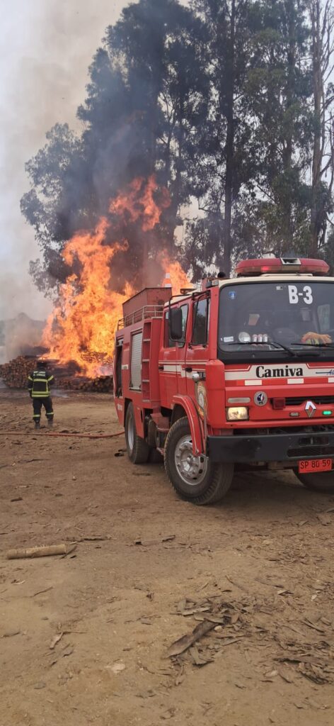 El segundo siniestro se desarrolla en el sector Cruz de las Rosas, en la comuna de Marchigüe, donde se encuentra una brigada, un técnico y un camión aljibe combatiendo las llamas.