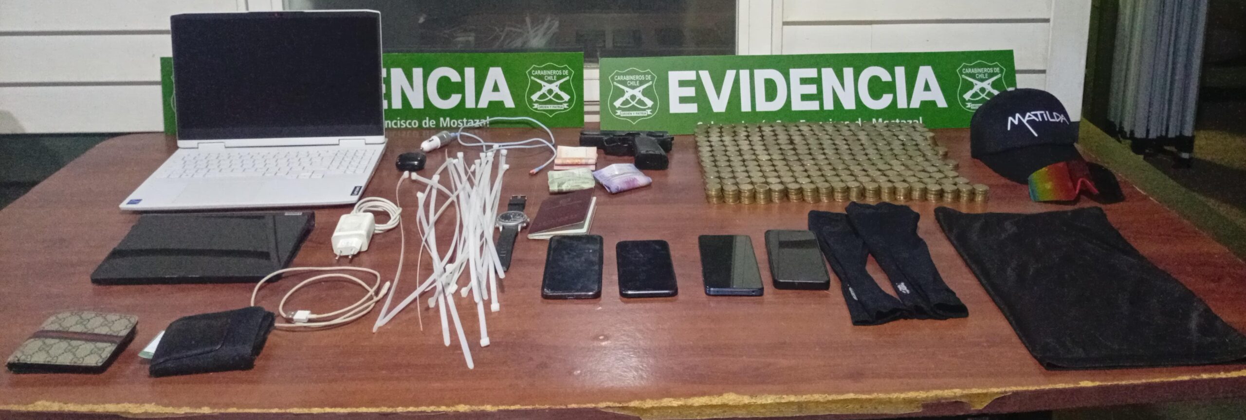 En el procedimiento se incautó el vehículo utilizado en el robo, teléfonos celulares, dinero en efectivo y un armamento tipo pistola, el cual será periciado por personal especializado de Labocar Rancagua. Asimismo, Carabineros logró recuperar la totalidad de las especies sustraídas desde el local comercial.