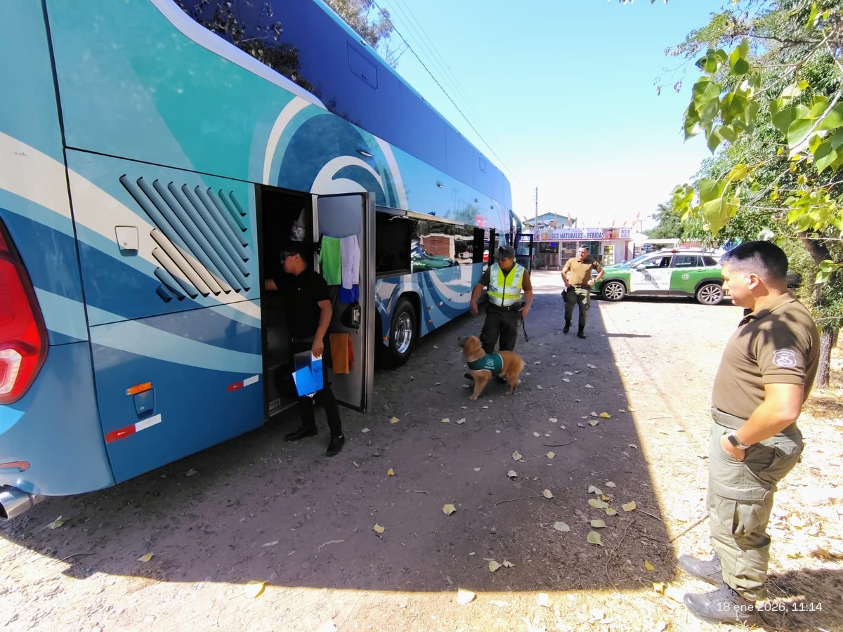 La intervención se llevó a cabo ayer entre las 10:30 y las 12:30 horas, e incluyó controles de tránsito y fiscalizaciones orientadas a la detección de drogas. En el procedimiento participó un ejemplar canino especializado, permitiendo ampliar el alcance de las revisiones y fortalecer las labores preventivas en la zona.