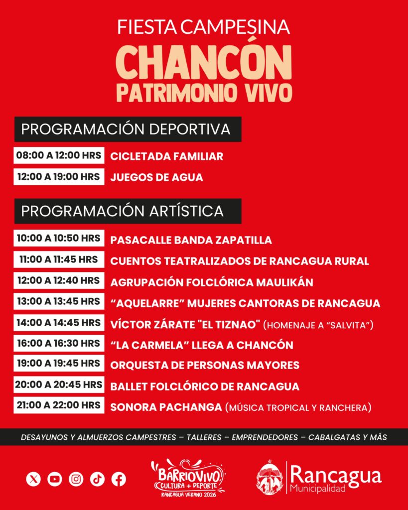 «Chancón Patrimonio Vivo», se denonima la fiesta campesina que se desarrollará este sábadoi 31 de enero, en el marco de la séptima jornada de la iniciativa Barrio Vivo impulsada por la Municipalidad de Rancagua y su Corporación.