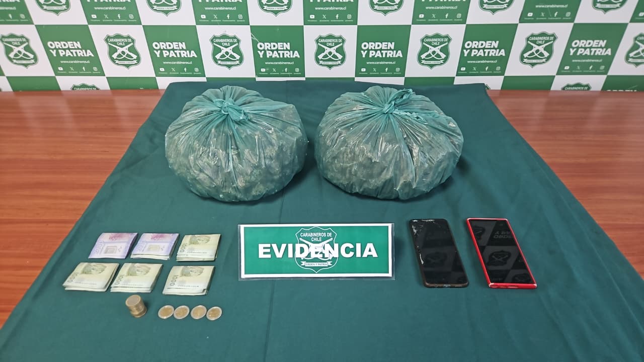 Una vez detenidos, los ocupantes fueron fiscalizados, detectándose al interior del vehículo un total de 1 kilo 970 gramos de marihuana elaborada. Producto de lo anterior, ambos sujetos fueron detenidos y pasaron a control de detención por el delito de tráfico de drogas.