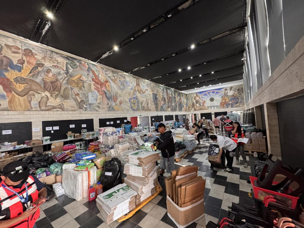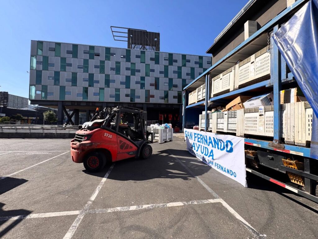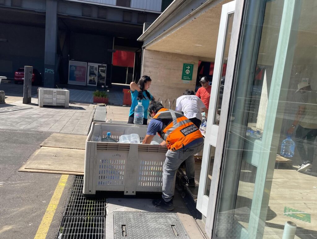 La comitiva fue encabezada por el director de Gestión del Riesgo de Desastres, Daniel Eldan, quien realizó la entrega de un camión con 28 bins cargados con alimentos no perecibles, artículos de aseo personal, comida para animales, agua y otros insumos esenciales, directamente en el centro de acopio de la Gobernación Regional del Biobío.
