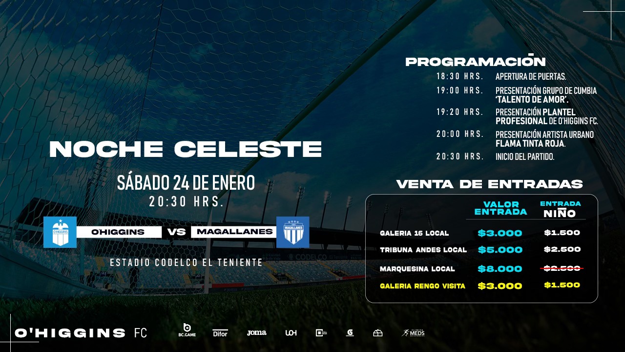 O’Higgins FC realizará una nueva edición de la “Noche Celeste” en el Estadio Codelco El Teniente, instancia que combinará espectáculos musicales, la presentación oficial del plantel profesional y un encuentro frente a Magallanes, como parte de la antesala deportiva de la temporada.