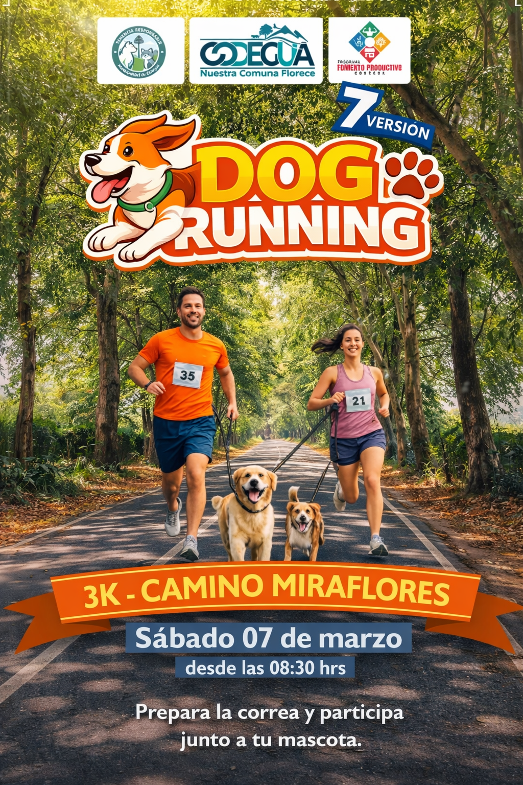 Este sábado 7 de marzo, desde las 08:30 horas, se realizará la séptima versión del Dog Running 2026, iniciativa organizada por la Ilustre Municipalidad de Codegua, a través de su Programa de Tenencia Responsable y Fomento Productivo, que invita a vecinos y vecinas a correr junto a sus mascotas en el sector Miraflores.