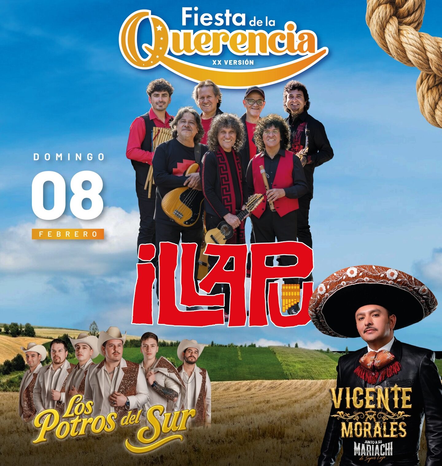 En tanto, el domingo 8 el escenariorecibirá a Illapu, Los Potros del Sur y Vicente Morales junto a Mariachi, cerrando el fin de semana con un espectáculo que mezcla folklore, rancheras y música popular.